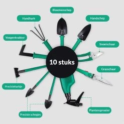 Tuinierset 10 Delig Met Complete Gereedschapskoffer Set Inclusief Tuinschaar, Handschep, Handhark, Plantenspuit, Haakvormige Voegenkrabber, Bloemenschepje, Bloemenschaar, Grasschaar En Heggenschaar