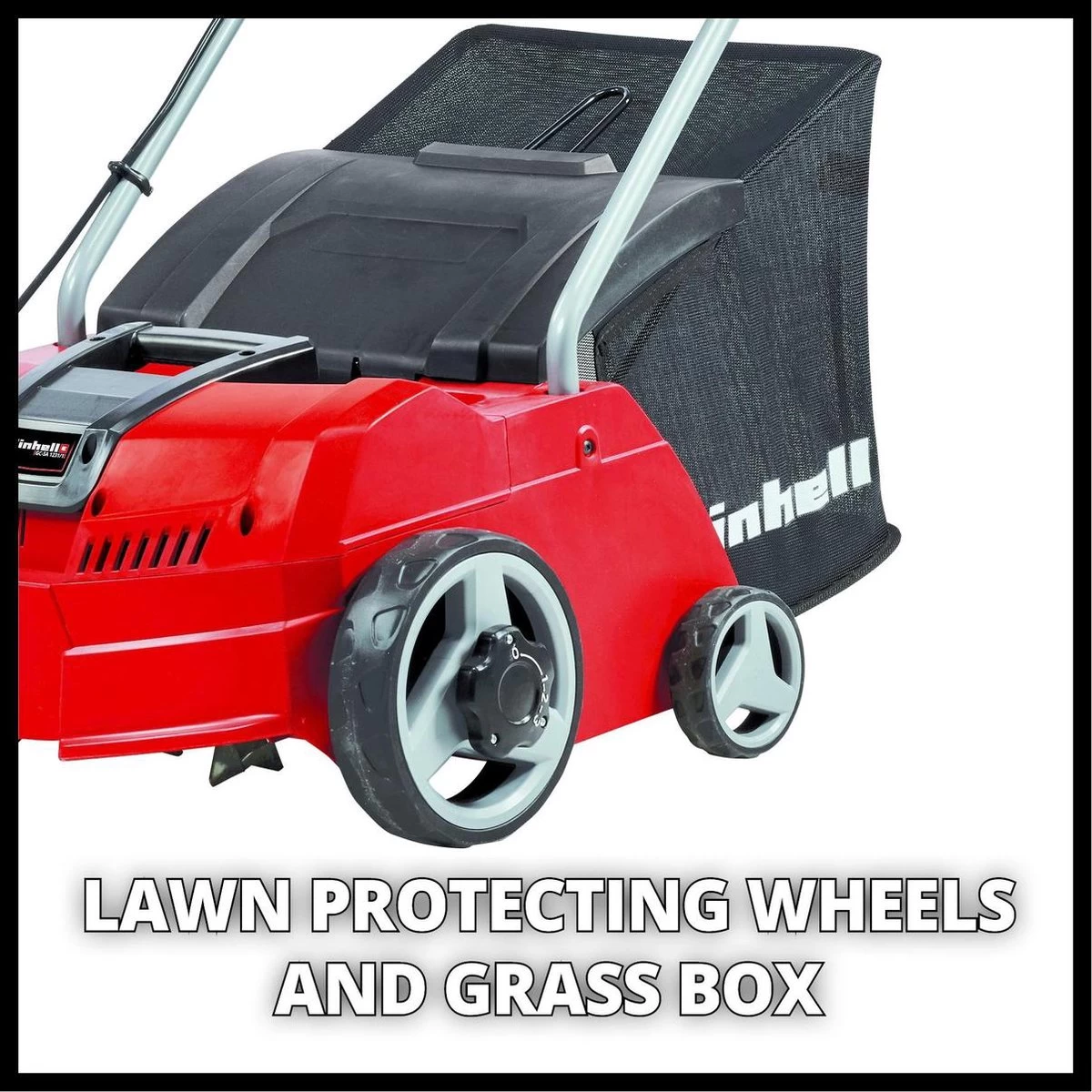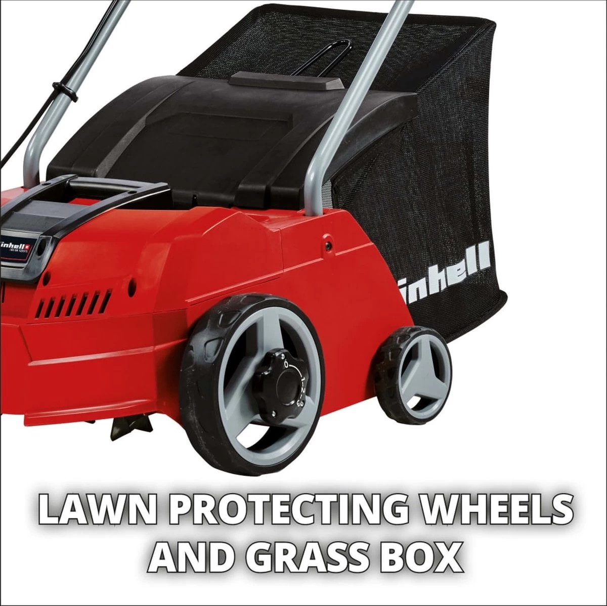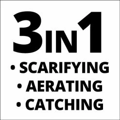 Bij levering is een royale 28 L opvangbak inbegrepen. De werkdiepte is instelbaar in 3 verschillende standen zodat de werkdiepte eenvoudig kan worden aangepast aan de eisen van de bodem en vegetatie. De parkeerstand zorgt ervoor dat de machine en het gazon worden beschermt. De grote wielen zorgen ervoor dat het gazon wordt ontzien en vergemakkelijken het werken op ruw terrein. De verticuteerder/beluchter wordt aanbevolen voor gazons tot ca. 300 m².