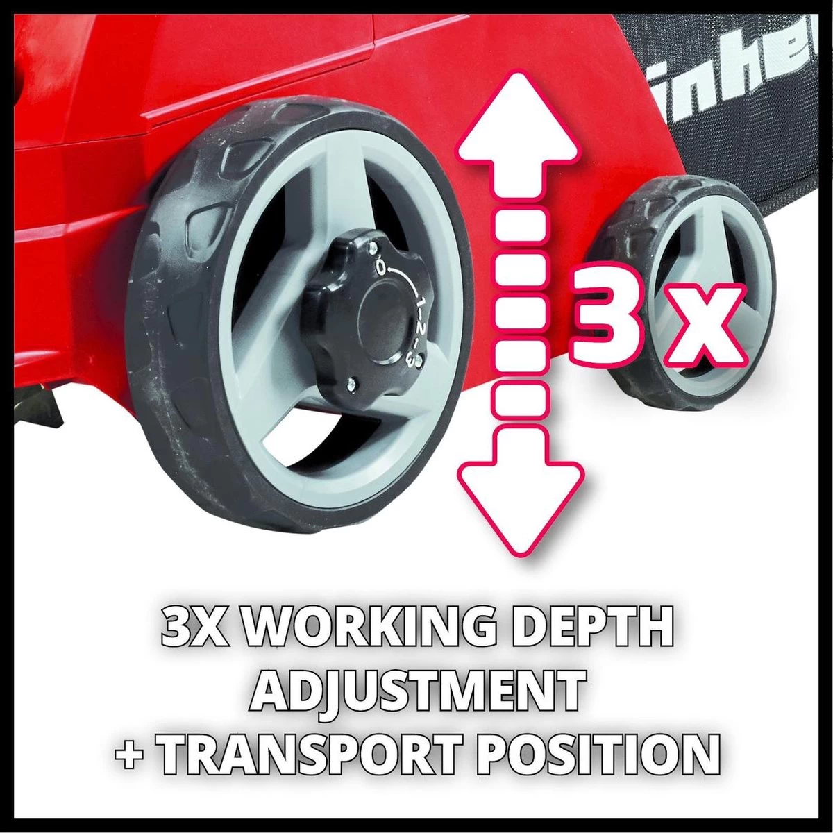 - Instelbare verticuteerdiepte, 3 standen + parkeerpositie