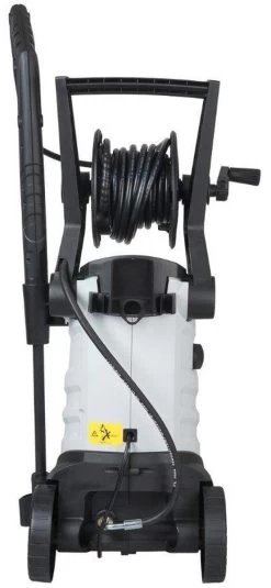 De trolley zorgt ervoor dat je de hogedrukreiniger makkelijk verplaatst, en met de haspel rol je de slang ook makkelijk en snel weer op.