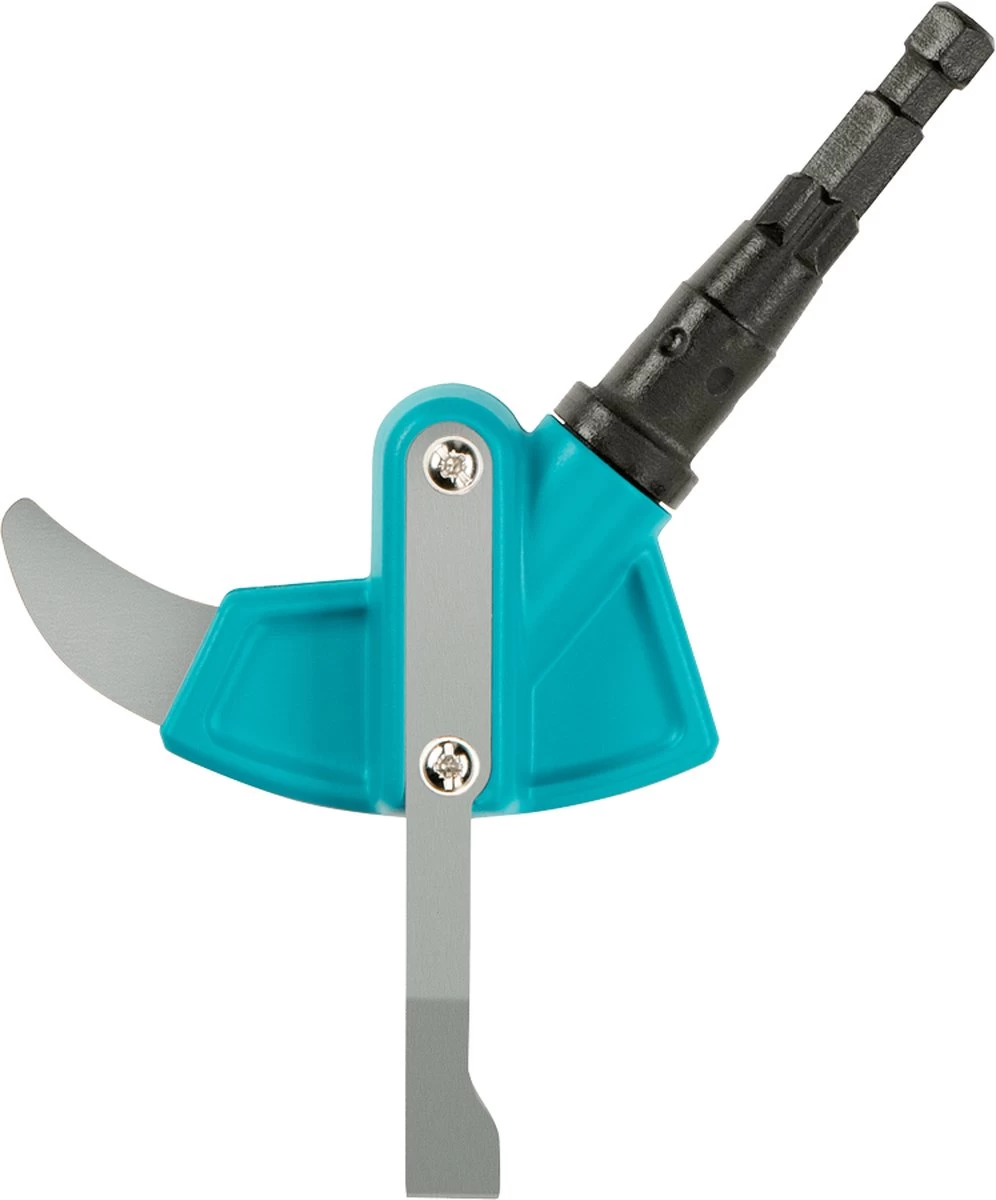 De blauwe 2-in-1 combisysteem voegenkrabber van Gardena is een slim hulpmiddel om onkruid en mos eenvoudig en moeiteloos te verwijderen. Het gereedschap heeft een robuust en dun roestvrijstalen blad, dat is ontworpen voor gebruik tussen nauw aansluitende terrasstenen of -tegels.
