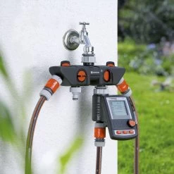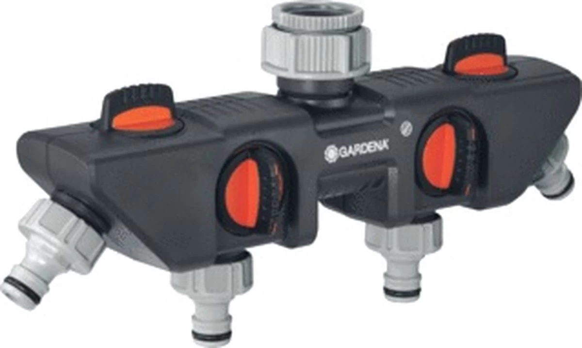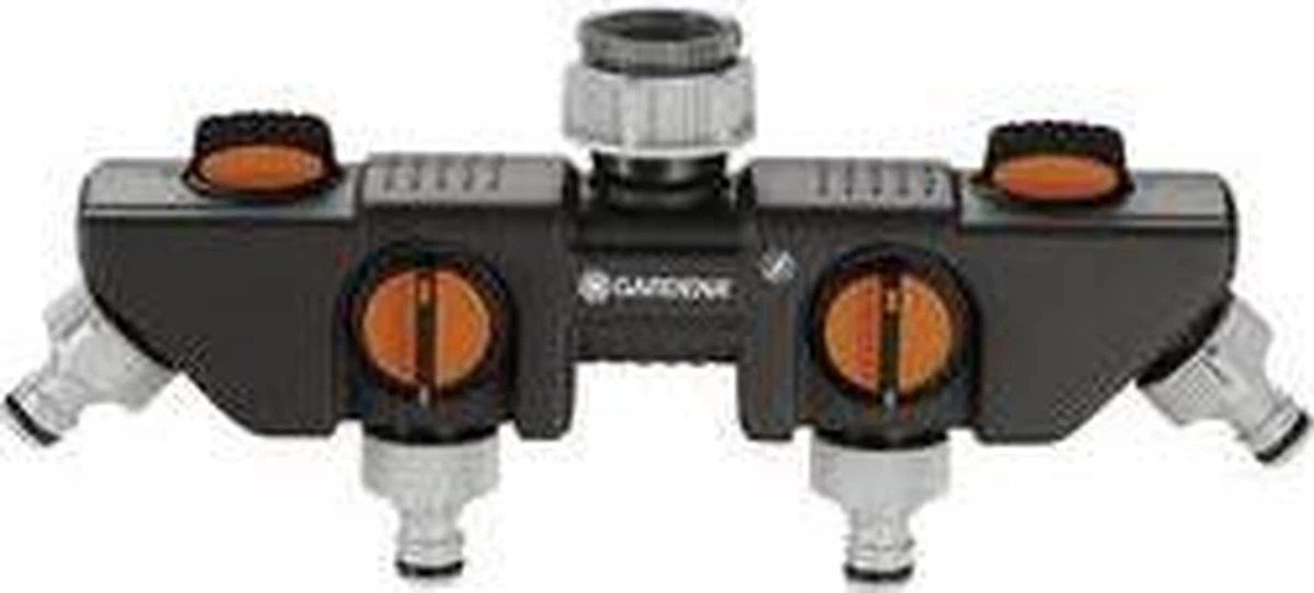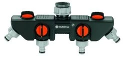 Met de Gardena 4-weg waterverdeler kunt u gelijktijdig diverse accessoires aansluiten op één kraan. De waterafgifte kan voor elke aansluiting afzonderlijk worden geregeld of afgesloten. Op de 4-weg waterverdeler kunnen twee Gardena besproeiingscomputers of watertimers worden aangesloten. De 4-weg waterverdeler kan met het Prof-System kraanstuk (art.nr. 2801-20) worden omgezet in het Gardena Prof-System voor een grotere waterdoorvoer. De Gardena 4-weg waterverdeler is geschikt voor 26,5 mm (g3/4)-waterkraan met en 33,3 mm (g 1)-draad en 21 mm (g 1/2)-waterkraan met 26,5 mm (g 3/4)-draad.