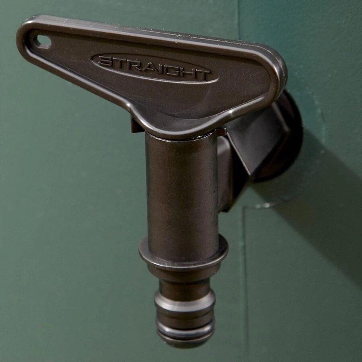 kunststof, groen. Met kunststof deksel (kinderveilig), zwarte aftapkraan en speciale kraan, geschikt voor koppelstukken (b.v. Gardena). Onverwoestbaar, weer- en vorstbestendig (wel aftappen).
