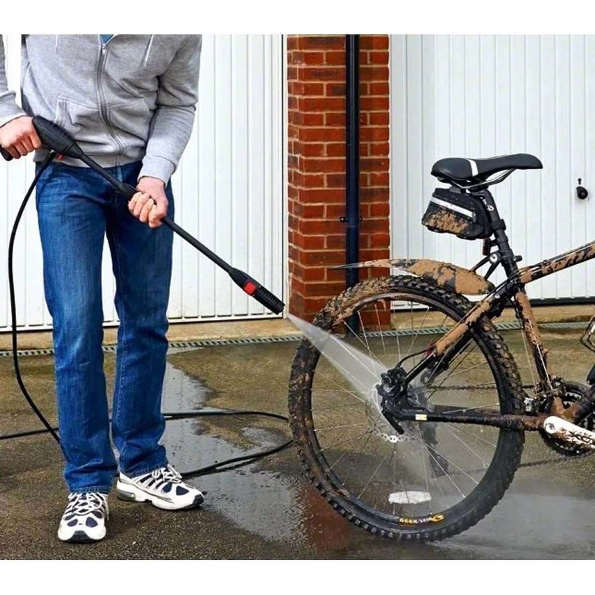 Krijg je het onkruid tussen de tegels niet weg? Zijn tuinmeubelen een doorn in het oog om schoon te maken? Met deze compacte hogedrukspuit staat de oplossing voor je klaar! Perfect voor schoonmaakklusjes in en om het huis. Dankzij de meegeleverde vuilfrees maak je moeiteloos alle voegen schoon, waardoor ze er weer als nieuw uitzien. Ook wordt er een reinigingsdispenser meegeleverd waarmee u eenvoudig hogedrukreinigers op fietsen en tuinmeubelen kunt aanbrengen. Dan spuit je het er gemakkelijk weer af met de vuilfrees zodat je meer vuil verwijdert. De hogedrukspuit is klein van formaat, maar heeft een spuitkracht van maar liefst 100 BAR die wordt geleverd door de krachtige 1200 WATT pomp. Door de slanglengte van ruim 5 meter en een snoer van 4,5 meter kun je overal gemakkelijk bij en omdat het apparaat zo klein en compact is, kost opruimen bijna geen moeite.