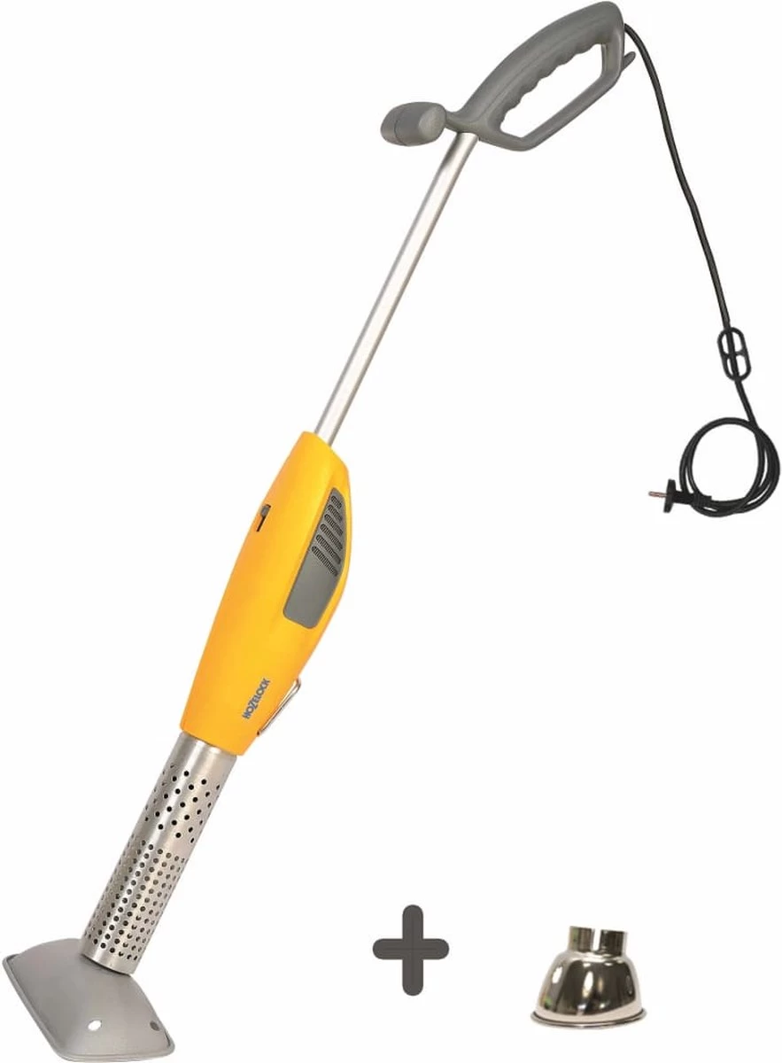 Kleur: geel en grijs Materiaal: polypropyleen en metaal Afmetingen: 14 x 10 x 96 cm (B x D x H) Afmetingen beschermkap: 25 x 10 cm (L x B) Vermogen: 2.000 W Voeding: 220 V ~ Motor met keramisch verwarmingselement voor een temperatuur van 600 °C Met een kleine ronde beschermkap voor precisiebehandelingen Met een extra handvat voor eenvoudig manoeuvreren Veilig opbergen dankzij de ventilatorstand Veilig afkoelsysteem