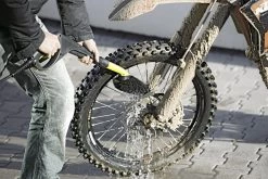 De Karcher Velgenwasborstel met borstels rondom garandeert een uiterst efficiente reiniging. De borstel kan bij de moeilijk bereikbare plaatsen en zelfs in de kleinste spleetjes van wielen en fietsspaken. Een gelijkmatige waterverdeling over 360° lost het vuil op en spoelt het weg en de kwaliteitsharen zorgen voor een zachte maar toch efficiente reinigingsactie voor uitstekende reinigingsresultaten all-round. De borstel omvat een dopmoer voor de veilige aansluiting van de spuitlans en een ergonomische handgreep voor een groot gebruiksgemak. Kortom: de ideale oplossing voor schitterend schone velgen en spaken. Deze velgenwasborstel past op alle Karcher Home & Garden hogedrukreinigers uit de series K2 – K7.