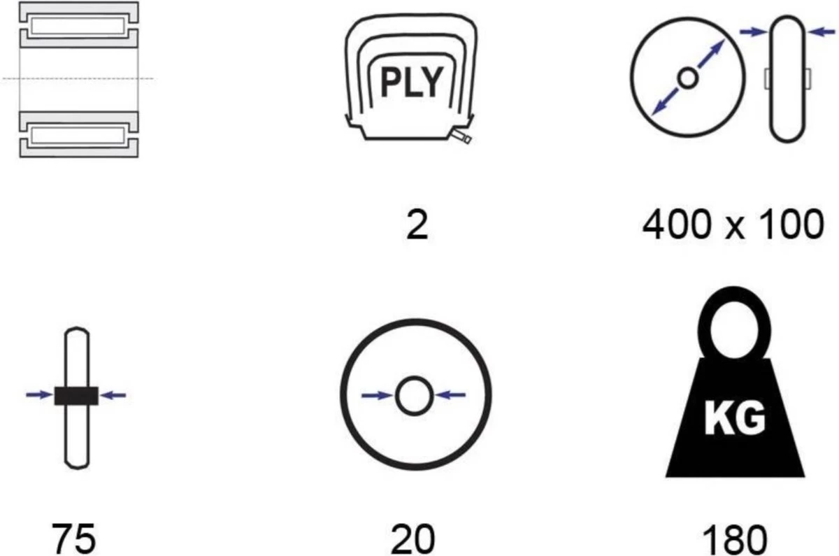 - Draagkracht per wiel: 180 kg bij 2 bar