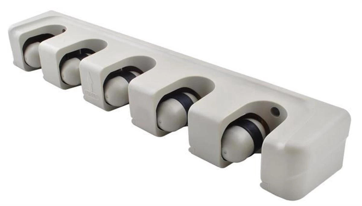Met dit handige ophangsysteem kunt u netjes en overzichtelijk uw bezems en (tuin_gereedschap ophangen in de garage, schuur, huis en kelder. Door uw gereedschap netjes op te bergen houdt u uw spullen eenvoudig bij elkaar, blijft uw gereedschap in conditie en voorkomt u ongelukken. De 5 balklemmen en rubberen stoppers passen zichzelf automatisch aan aan de dikte van de steel, waardoor deze altijd stevig en solide zal blijven hangen Tevens beschikt deze wandhouder over 6 handige haakjes waar u sleutels, klein handgereedschap als inbussleutels en andere accesoires aan kunt hangen.
