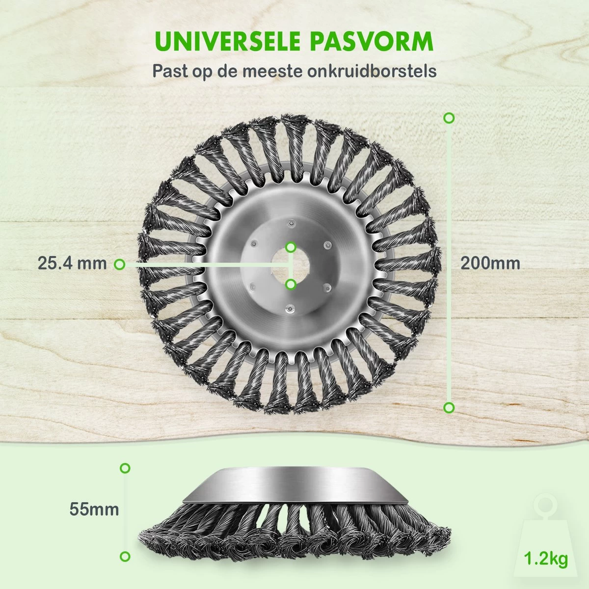 Ben je het zat om altijd maar het onkruid handmatig te moeten verwijderen waardoor je pijn aan je rug krijgt? Dan is deze onkruidborstel de ideale oplossing. Je kunt binnen enkele seconden gemakkelijk en snel onkruid verwijderen dankzij het duurzame ontwerp en de gedraaide staaldraden. Daarnaast krijg je ook een adapterset zodat je nog makkelijker de onkruidborstel aan jouw bosmaaier kunt bevestigen!