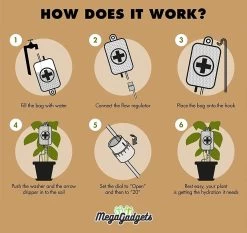 Het watergeefsysteem kan automatisch water geef jouw planten wanneer je niet thuis bent. Het infuus kan simpel gevuld worden met water en vervolgens in een potje worden gedaan. Verder heb je er geen enkel omkijken naar want de plant krijg automatisch water afhankelijk van de dorst!