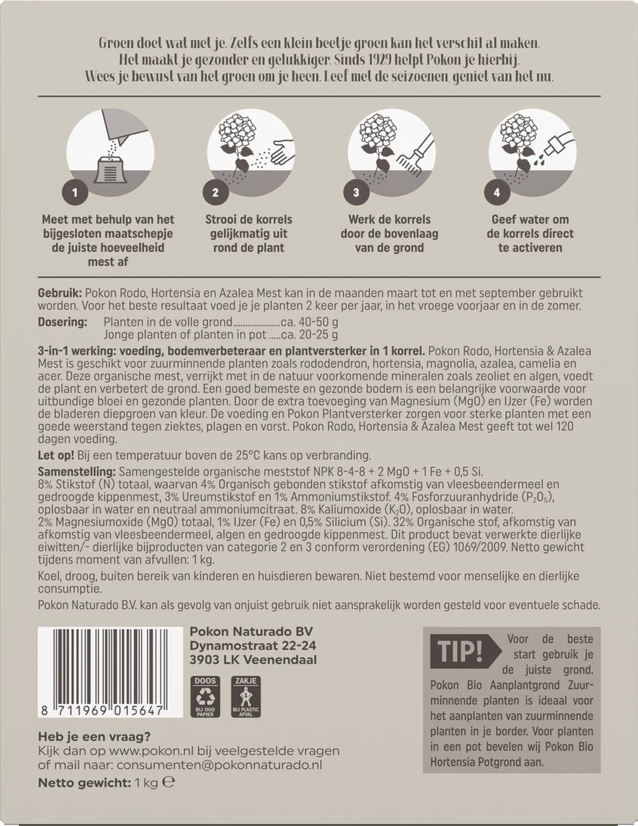 Met Pokon Rododendron, Hortensia & Azalea Mest, ben je verzekerd van groene en gezonde begroeiing!