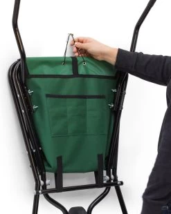 De wagen heeft een capaciteit van ca. 50 liter en laat zich na gebruik makkelijk samenvouwen en met klittenband veilig opbergen. Door de extra greep kun je de kruiwagen niet alleen makkelijk transporteren maar ook ruimtebesparend ophangen.